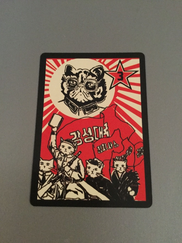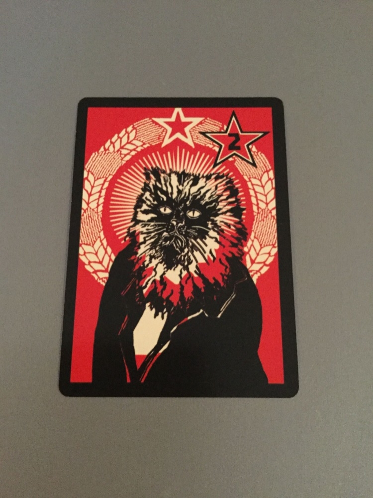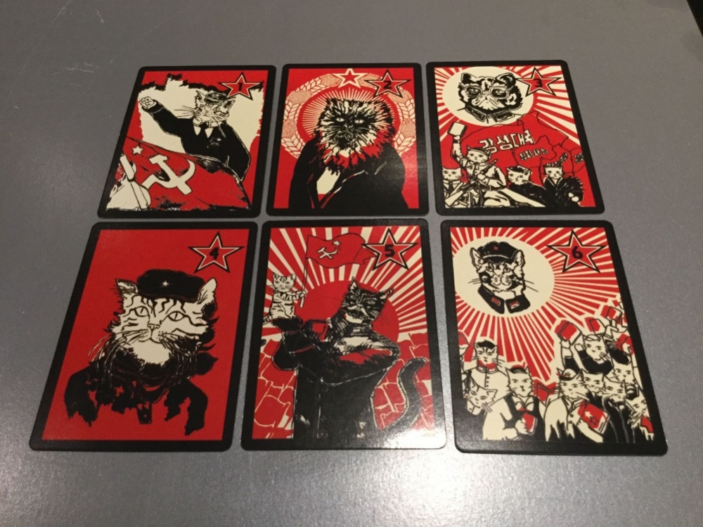 Cada jogador recebe 3 cartas. Durante seu turno, use a habilidade das cartas para desafiar seus oponentes, incluindo conflito direto, espionagem, caçada ao rato capitalista ou ganhando influência.