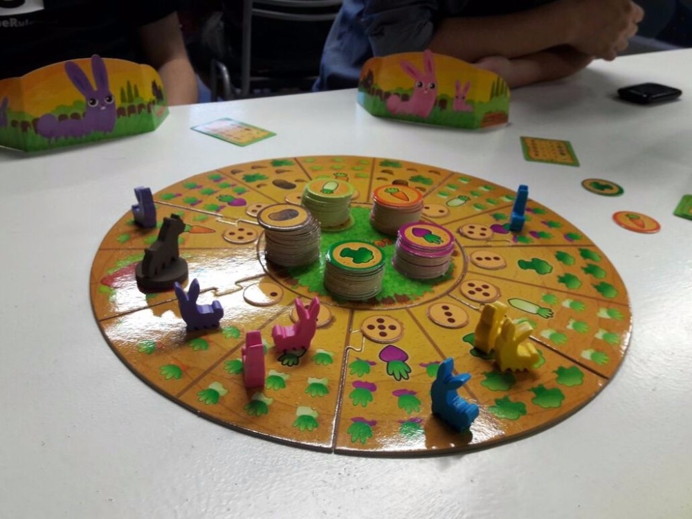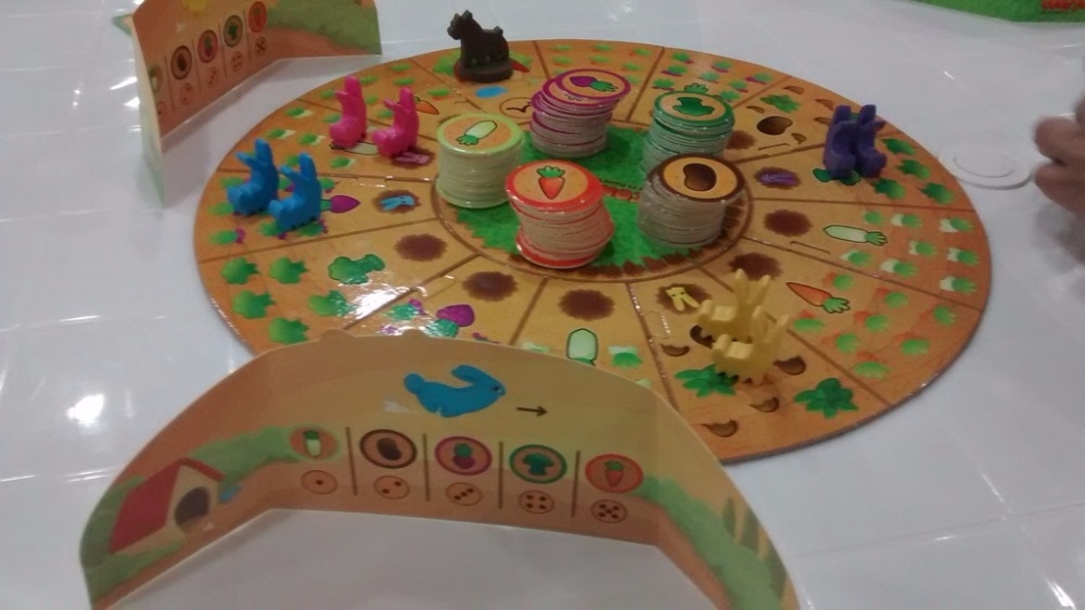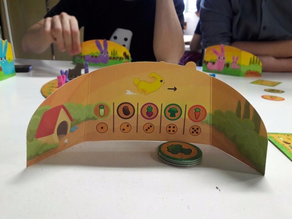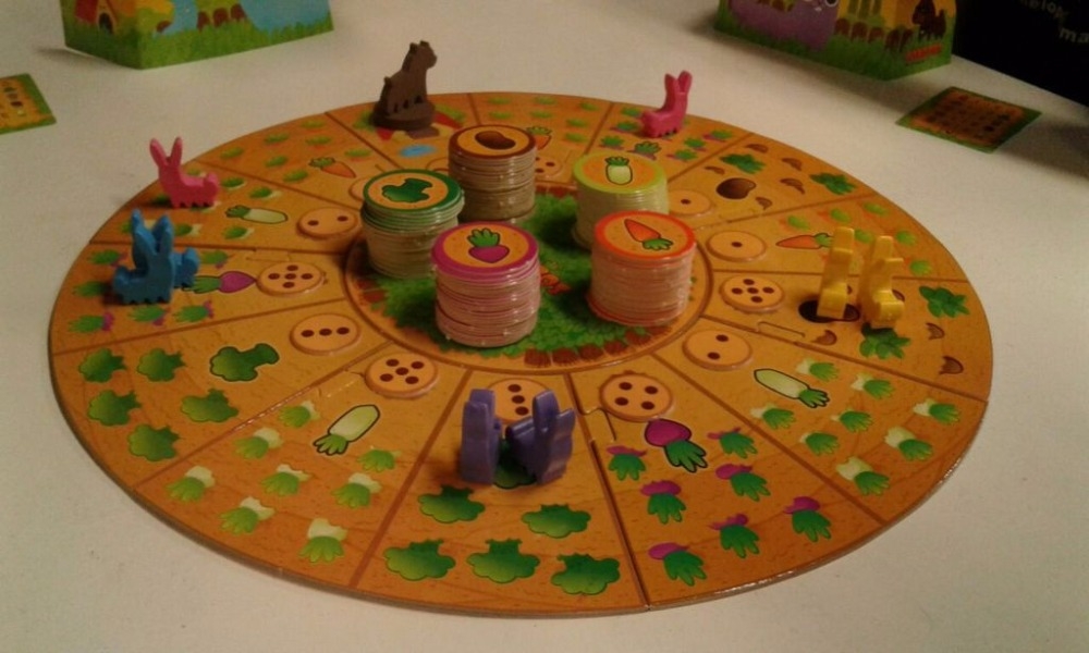 Em Conejos en el huerto, os jogadores controlam dois coelhos, competindo para colher as 5 espécies de vegetais cultivadas no pomar. O jogo é jogado em um tabuleiro modular configurado aleatoriamente.