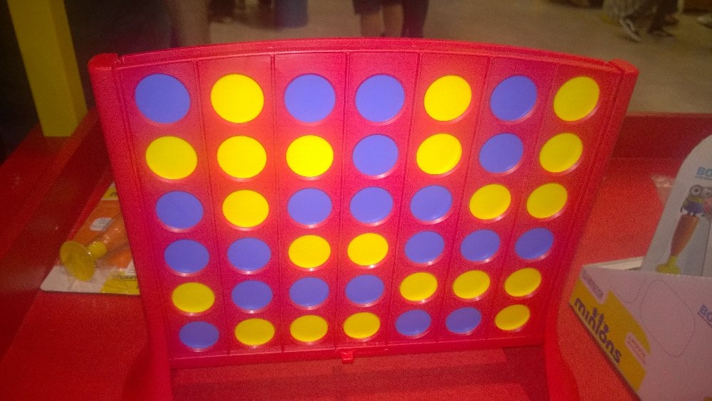 Partida de Lig4 em espaço de demonstração da Hy Happy Shopping Cidade de São Paulo. Vitória do azul na última peça e movimento do jogo. Quase deu velha!
