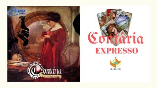 Contária é um jogo de cartas no estilo "filler", onde cada jogador irá montar uma história com 4 personagens buscando fazer a combinação que gere o final mais triste ou mais feliz.
