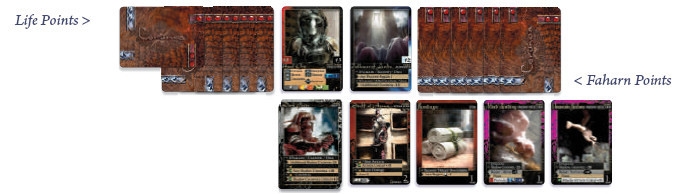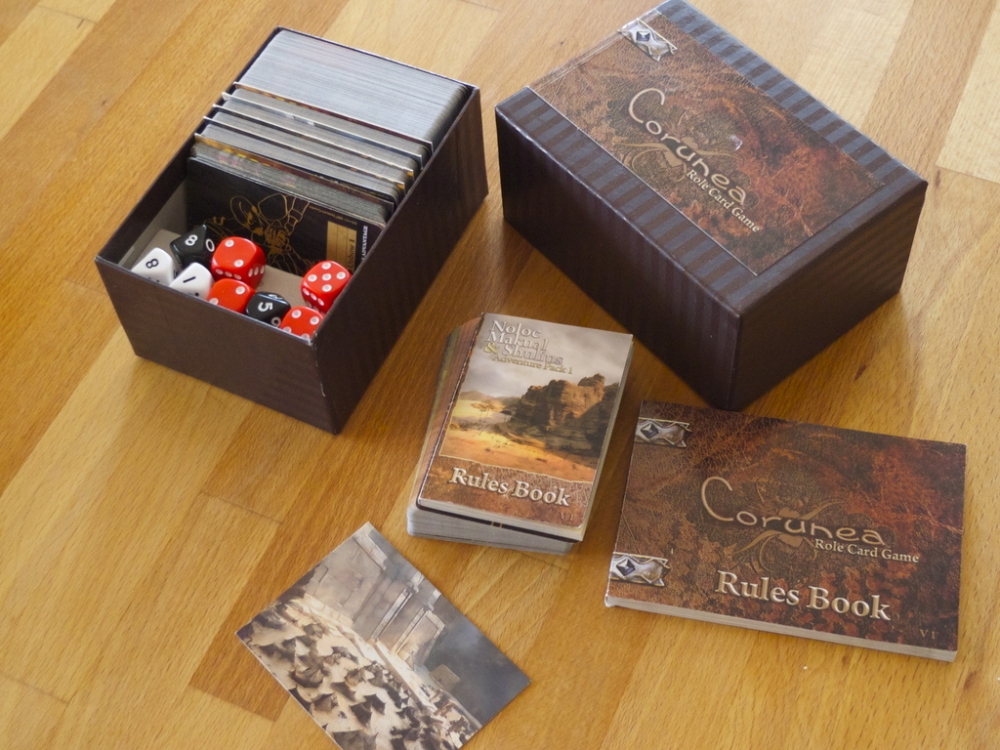 Corunea é feito para ser jogado em uma mesa, usando suas próprias cartas, alguns dados e nenhum outro elemento. No sistema de cálculo nenhum marcador é obrigado a jogar, e não é necessário nem papel e caneta.