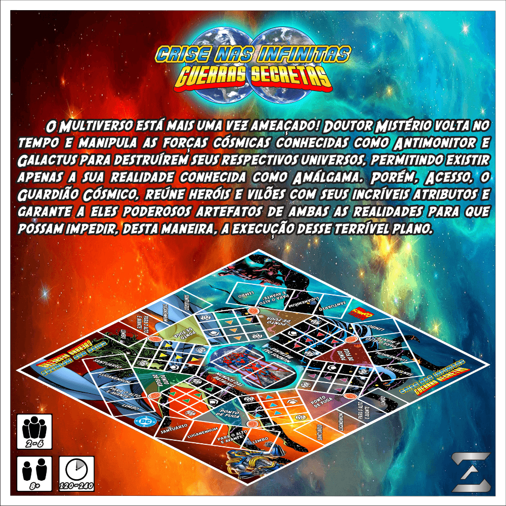 Em busca de um jogo simples (voltado APENAS para a família e os amigos) que envolvessem os Universos DC e Marvel e os maiores personagens das Histórias em Quadrinhos, foi criado "CRISE NAS INFINITAS GUERRAS SECRETAS", o qual é um misto de Ludo com Top Trumps (Super Trunfo no Brasil) com o acréscimo de cartas de ação que podem alterar a realidade do jogo.