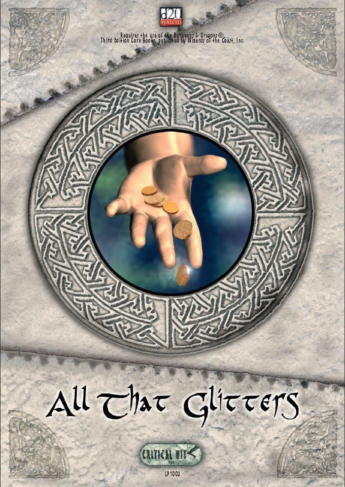 Em All That Glitters, os personagens estão no final de uma longa jornada; o tipo de coisa que os heróis fazem o tempo todo. Eles chegaram a uma pequena vila chamada Havelock; pouco mais que um mercado cercado por um muro, e o grupo precisa de suprimentos e reabastecimento de seus equipamentos de aventura. Em qualquer mundo onde os heróis viajam grandes distâncias em missões, esse tipo de assentamento deve ser muito familiar para os personagens e eles ficarão felizes com a oportunidade de estocar armas e rações. Para tornar o encontro realmente perfeito, seus jogadores deveriam ter sido testados até o limite pouco antes de chegarem à cidade-mercado (o texto pressupõe que este seja o caso: se você tiver uma configuração diferente em mente, você precisará modificar parte do texto). Com apenas uma flecha para compartilhar entre eles, seus jogadores devem estar ansiosos para entrar correndo em Havelock e fazer compras! Neste encontro, entretanto, uma simples compra dá terrivelmente errado, pois a legalidade da moeda dos PJs é questionada. Eles são, na verdade, vítimas de uma fraude (mais precisamente, uma série de fraudes) em andamento no mercado, perpetrada por uma gangue de ladrões talentosos, que se autodenominam Naturals. Os bandidos pretendem levar Havelock por milhares de moedas de ouro em um único dia e escapar antes que alguém perceba o que está acontecendo.