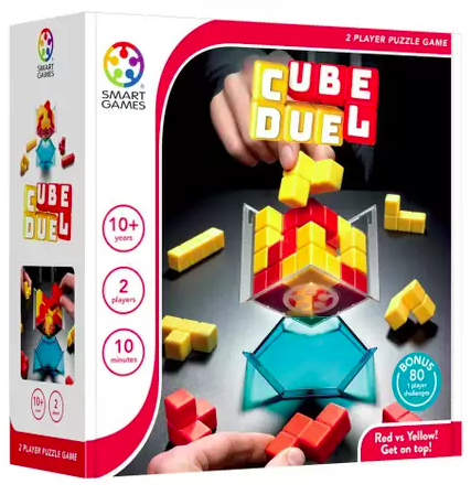 Em Cube Duel, os jogadores alternam peças de equilíbrio no tabuleiro do cubo, escolhendo estrategicamente entre movimentos ofensivos e defensivos. O objetivo é ter sua cor em posições mais expostas quando o jogo terminar. Se estiver sozinho, treine suas habilidades de construção 3D com os 80 desafios incluídos no modo single player!