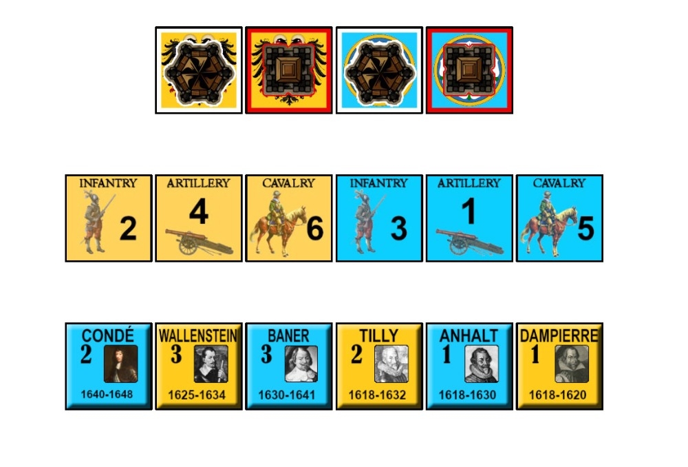 O jogo inclui cenários que abrangem a Revolta da Boêmia, a intervenção dinamarquesa, a intervenção sueca, a intervenção francesa e uma campanha da Guerra dos Trinta Anos de 31 turnos que durou de 1618 a 1648. Cada cenário tem um personagem único, e o jogo pode ser jogado em tão pouco quanto uma hora e meia (para um cenário curto) ou pode ser um jogo de várias sessões para a campanha completa.