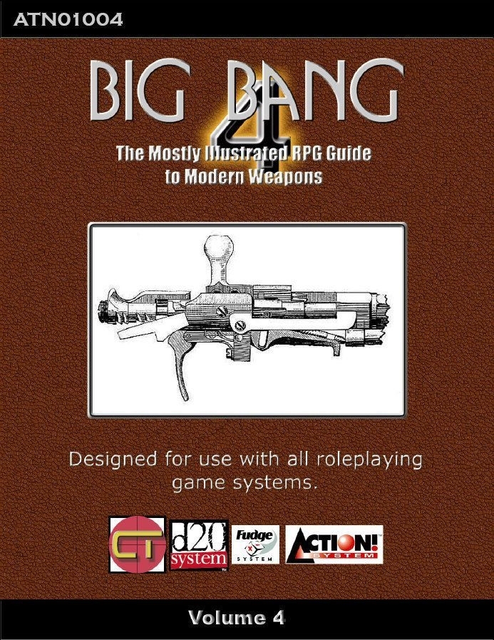Big Bang é uma série aberta de livros de referência projetados para jogadores ávidos de RPG, especialmente nos gêneros modernos e de futuro próximo. Cada volume apresenta dados factuais e informações sobre uma série de armas, incluindo detalhes da história da arma, juntamente com estatísticas que permitem o uso imediato em vários sistemas de jogo. Os dados factuais do mundo real podem ser usados para adaptar facilmente as armas apresentadas a uma ampla gama de sistemas de jogo.