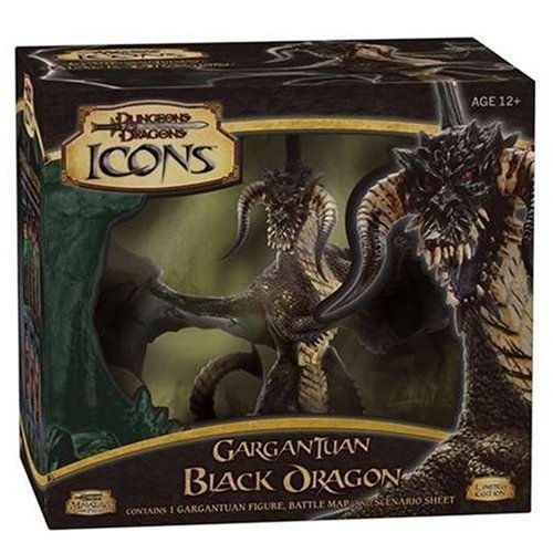 Este produto Gargantuan de estreia contém não apenas um dragão negro, mas também estatísticas extensivas para a figura. Há também um mapa colorido e um cenário de jogo jogável, já que todas as figuras na linha de Ícones de D&D podem ser jogadas tanto no jogo de escaramuça D&D Miniatures quanto em qualquer campanha de RPG.