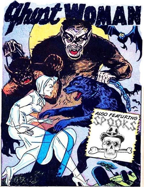 Ghost Woman... Also Apresentando Spooks contém três fanstastic, histórias esquecidas da Era de Ouro dos Quadrinhos, um tempo antes de "certo" e "errado" no gênero de quadrinhos terem sido definidos, e a criatividade foi liberada. Dois dos contos apresentam Spooks, um alegre fantasma em busca de justiça, que é uma das primeiras obras de Dave Berg, mais lembrado por sua zombaria gentil da cultura americana em 20 anos de edições da MAD Magazine, e o terceiro é um dos histórias de terror mais ricas em toda a Era de Ouro. Em 8 páginas curtas, o escritor/artista Bernard Bailey esboça um mundo de lobisomens mortos-vivos, espiritismo inquieto e caçadores de monstros - tudo no contexto de uma tragédia pessoal de partir o coração.