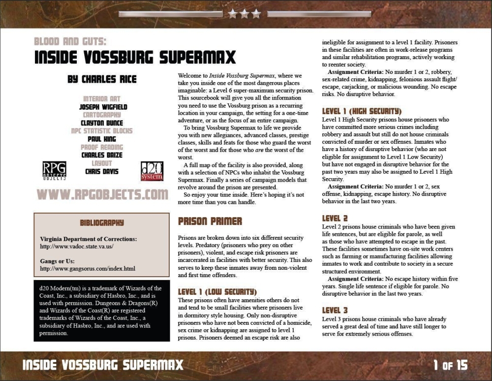 Para dar vida ao Vossburg Supermax, fornecemos a você novas alianças, classes avançadas, classes de prestígio, habilidades e talentos para aqueles que guardam o pior dos piores e para aqueles que são os piores dos piores.