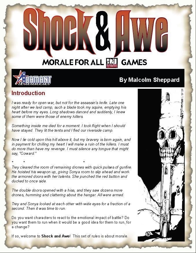 Você quer que os personagens reajam ao impacto emocional da batalha? Você quer que eles concorram quando seria uma boa ideia para eles, para variar? Se assim for, bem-vindo ao Shock & Awe! Este conjunto de regras é sobre moral.