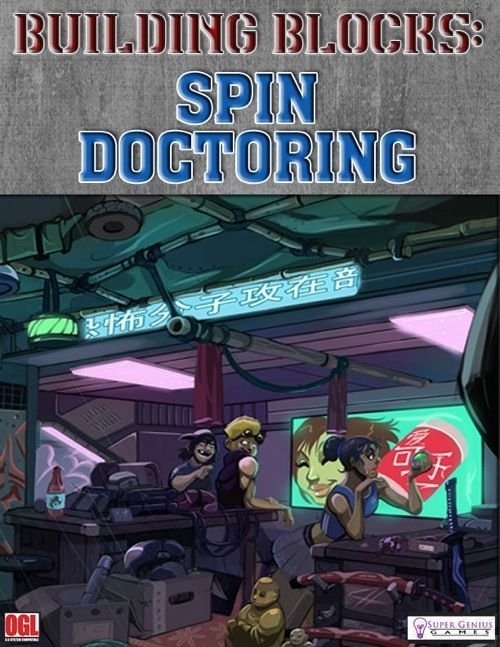 Building Blocks: Spin Doctoring apresenta um conjunto de regras opcionais para medir e influenciar a opinião pública em todo o amplo espectro de um mundo de campanha. Será mais útil em campanhas em que os personagens dos jogadores têm certa fama, suas aventuras são seguidas e relatadas pela mídia de massa e detalhes como percepção do público e índices de aprovação são importantes para o grupo. Também são apresentados detalhes sobre a organização Bird's Nest Promotions - uma empresa de relações públicas adequada para uso em praticamente qualquer campanha definida nos dias modernos - incluindo um artigo NPC totalmente desenvolvido para o proprietário da organização, Jeri Bird.