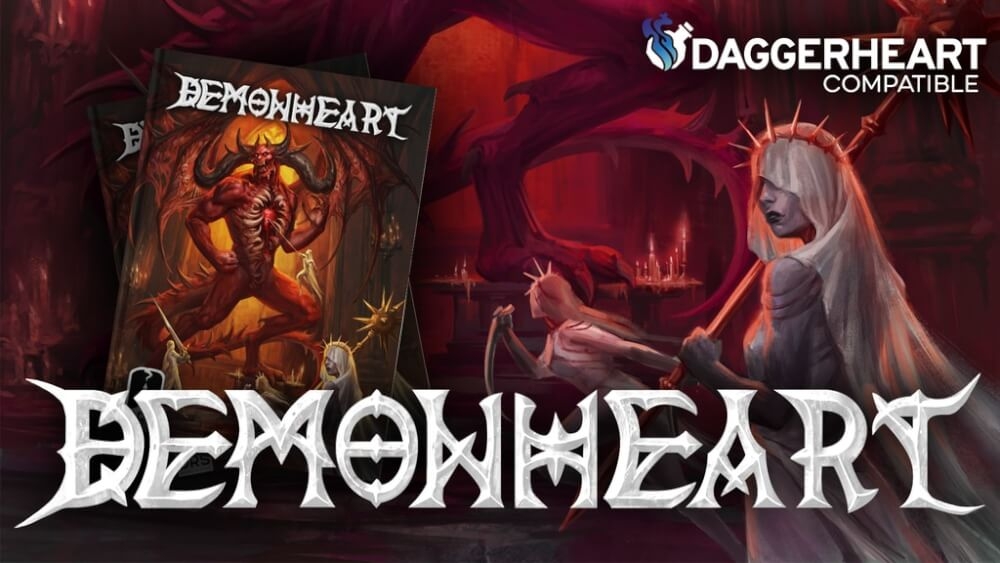 Demonheart é um suplemento maligno de 450 páginas que funciona como um códice do mal, trazendo 7 novos domínios, 66 novas subclasses, além de um cenário e uma aventura para Daggerheart™.
