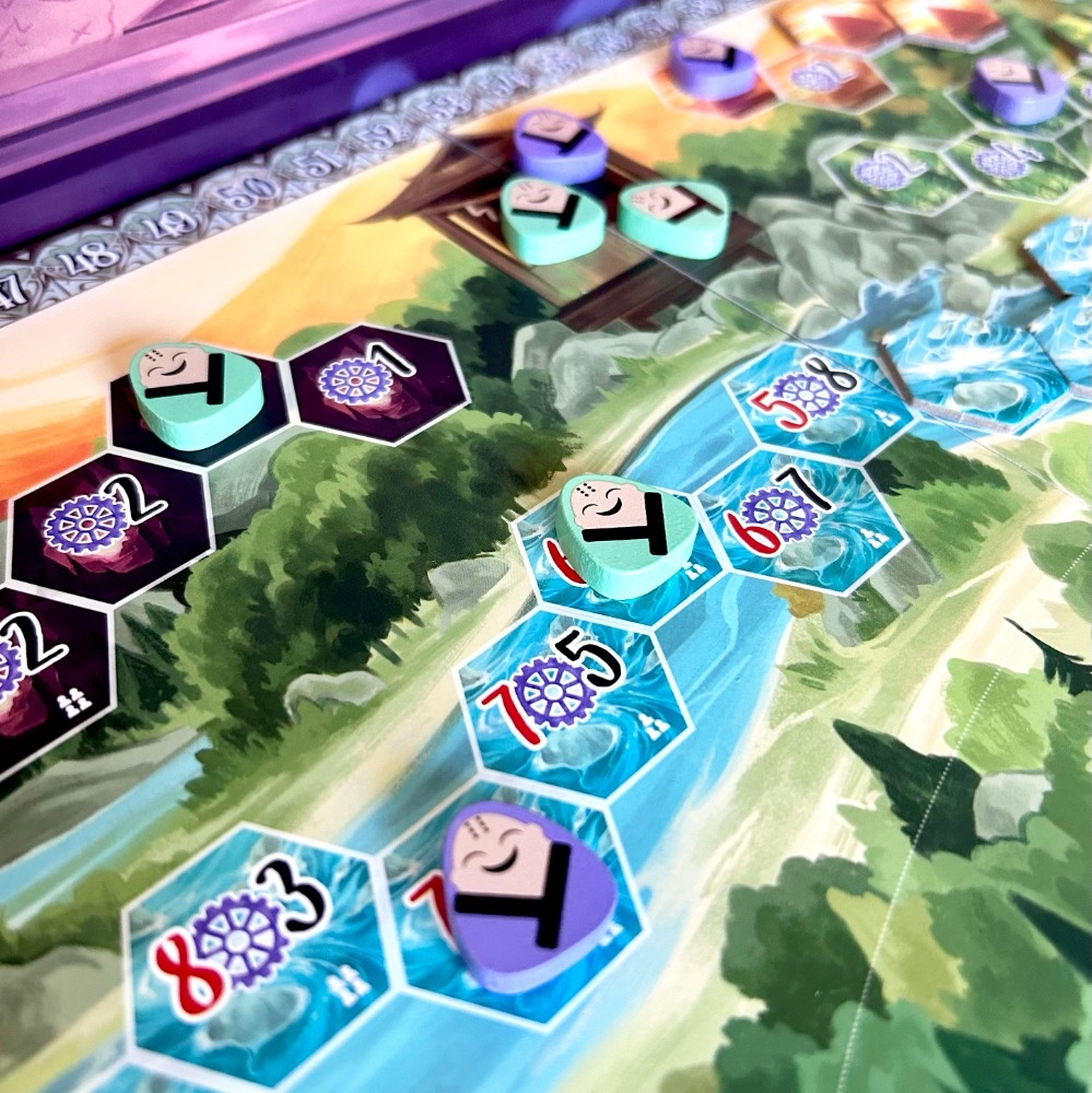Por sua vez, você produzirá ou moverá seu magnata para um novo distrito, onde poderá enviar seus trabalhadores para trabalhar, comandar a exploração de hexágonos florestais ou fluviais para abastecer sua necessidade infinita de vapor e realizar um ação para expandir e mostrar sua grandeza para a cidade.