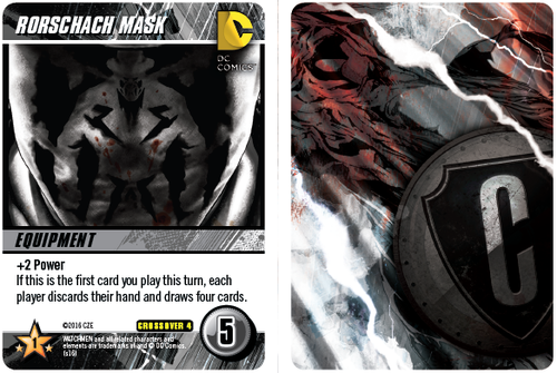 Watchmen de 1986 é uma das histórias mais célebres dos quadrinhos. E agora este mundo chega em um novo Crossover Pack para o jogo de construção de deck DC Comics. Este pacote Crossover inclui regras ocultas, Maquinações, cartas de Desafio, Terrenos, além de novas cartas do baralho principal e novas grandes dimensões de cartas de super-herói.
