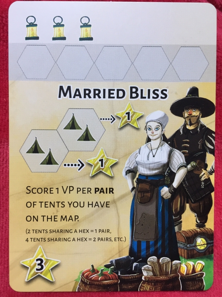 Jogabilidade: "Married Bliss" pode ser adquirida como qualquer outra tecnologia, por 3 ícones de pesquisa. No final do jogo (além de seu 3 pontos impressos), ela marca 1 ponto para cada par de tendas que o jogador tem em um tile. Casas não contam, e duas tendas em dois tiles diferentes não contam como um par. (Quatro tendas em um único tile, no entanto, contam como dois pares.)