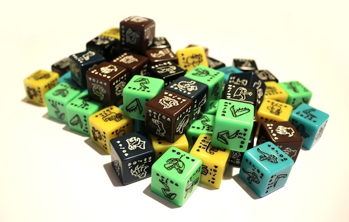 Os monstros são construídos rolando dados das partes dos monstros e montando-os na laje do seu laboratório. Cada monstro tem sua própria capacidade única - combine vários monstros para obter mais habilidades!