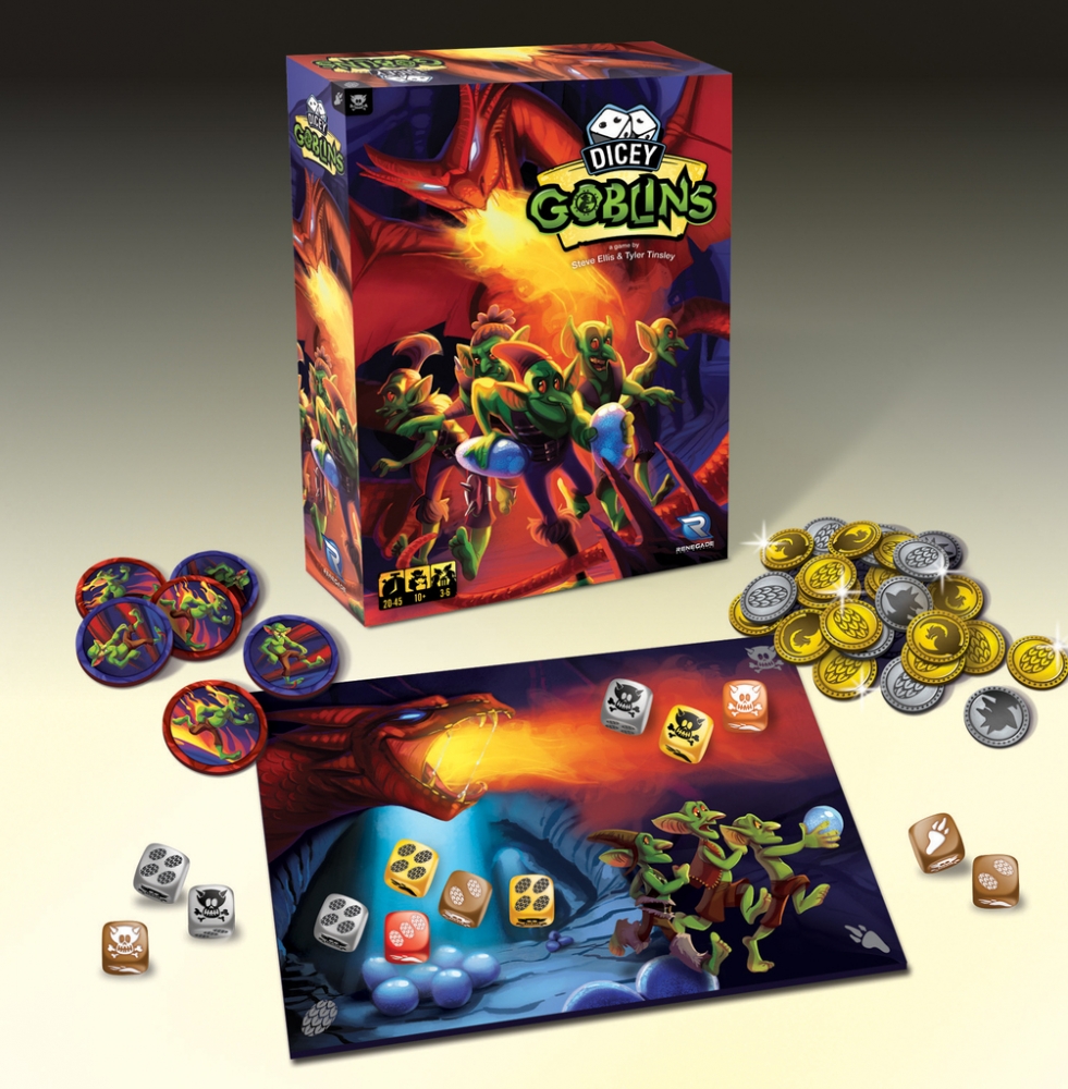 Dicey Goblins é um jogo de dados com a mecânica pressione sua sorte, no qual os jogadores assumem o papel de goblins roubando ovos de dragão. O jogo é jogado em rodadas e cada rodada consiste de uma série de turnos em que os jogadores decidem se eles vão tentar invadir o covil do dragão ou virar as costas.