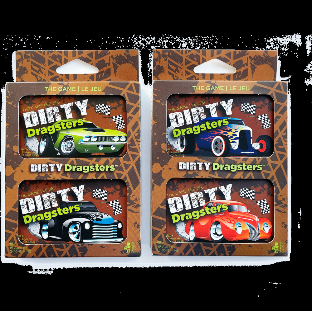 Dirty Dragsters é um jogo de cartas competitivo de corrida de arrancada com uma mecânica de jogo simples para 2 ou mais jogadores