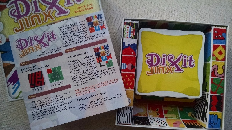 Jinx é um jogo da família Dixit, mas ao contrário do jogo original, os desenhos não são ilustrações realistas retratando cenas mas imagens a meio caminho entre a abstração e a figuração.