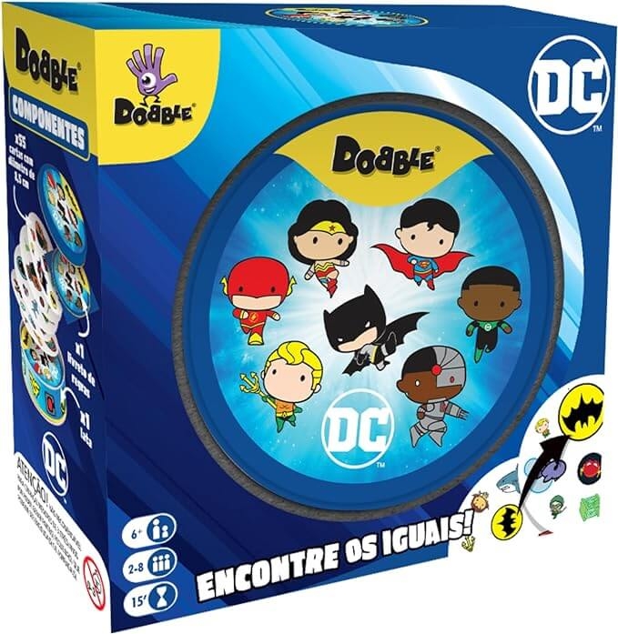 Descubra a edição especial Dobble: DC Universe, onde o mundo dos super-heróis colide com a diversão de Dobble! Com símbolos da DC em arte 'Toy' que trazem a magia desse universo para suas partidas. Encontre todos os heróis e vilões nessa batalha de cartas eletrizante!