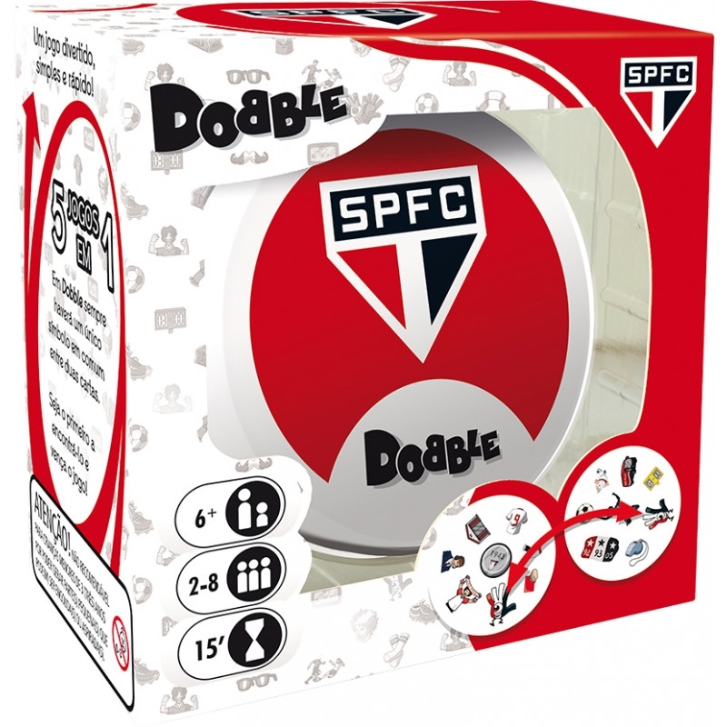 Dobble é um dos jogos mais famosos e adorados no mundo todo. Aqui, cada carta possui 8 símbolos e você precisa encontrar o símbolo em comum entre duas cartas para pontuar. É um jogo super fácil de aprender e ideal para reunir os torcedores fanáticos pelo São Paulo.