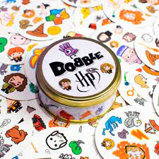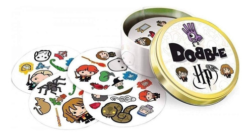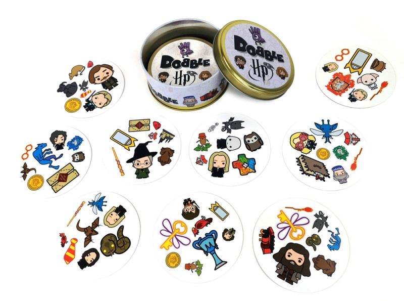 Dobble viaja para Hogwarts para esta edição especial de Harry Potter. Os fãs de Harry Potter terão que identificar a única imagem correspondente entre duas cartas neste duelo mágico. Os jogadores terão que escolher as imagens correspondentes de uma seleção de seus personagens favoritos, objetos mágicos, bestas e brasões de casas!