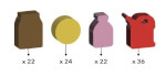 Kit de tokens de madeira contendo 22 sacos de ração, 24 moedas, 22 frascos de remédios e 36 galões de gasolina para você substituir os tokens de papel e ter uma experiência diferente ao jogar Dogs Boardgame com este tipo de componente.