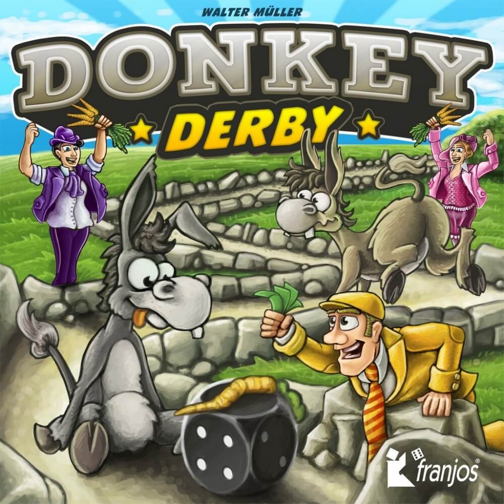 No jogo de corrida Donkey Derby, cada jogador move cada um dos cinco burros. Os jogadores apostam no futuro vencedor. Se você fizer a aposta certa logo cedo, você terá muitos pontos de vitória no final. Aposte mais tarde, e você pode estimar melhor o acabamento e obter pontos de forma mais segura. Mas o dado também desempenha um papel: devo avançar o meu favorito com o "3" que eu rolei, ou devo tentar rolar um número maior? Se minha sorte com o dado não cumprir meus cálculos, a alegria maliciosa dos outros jogadores é garantida.