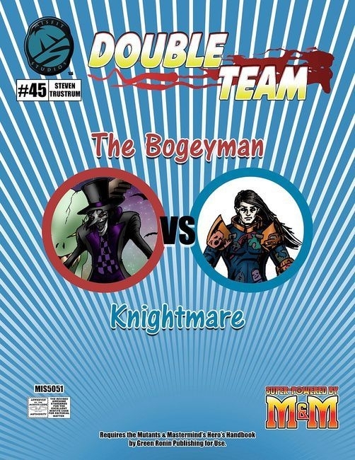 Double Team: The Bogeyman VS Knightmare fornece dois personagens para seus jogos Super-Powered by Mutants & Masterminds: o vilão mestre do horror adormecido, o Bogeyman, e um herói, o pesadelo renegado, Knightmare.