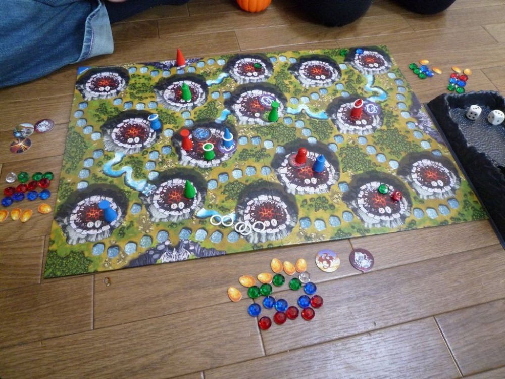 Usando estratégia e astúcia, cada jogador deve mover seus "companheiros" de vulcão em vulcão, coletando tesouros.