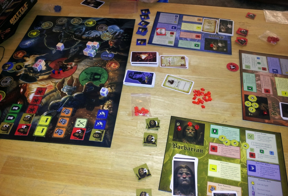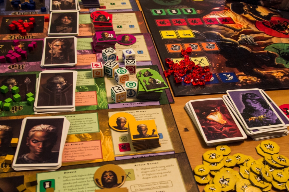 Dragon Rampage, um jogo competitivo de fantasia de Richard Launius, possui mecânica estratégica de dados para 3 a 5 jogadores.