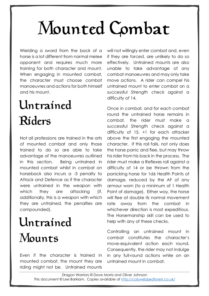 1. Dragon Warriors (Revised Edition) - Mounted Combat