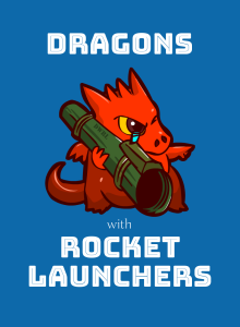 Dragons with Rocket Launchers é um jogo de cartas de disparar foguetes freneticamente enquanto se defende de foguetes que vêm na direção do jogador. A cada turno, uma carta é jogada afetando o estado do campo de batalha. Quando uma carta Rocket Time é jogada, todos os foguetes em jogo se moverão pela mesa e potencialmente erradicarão alguns jogadores.