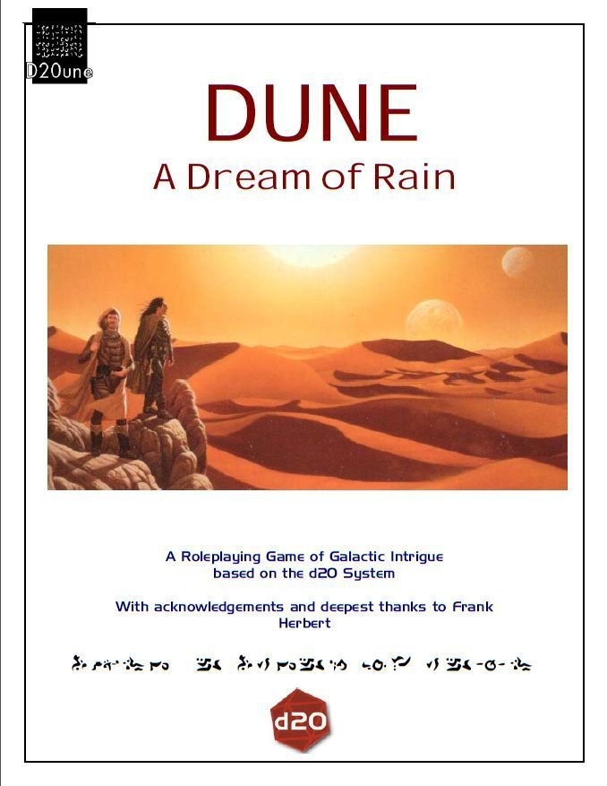 DUNE: A Dream of Rain é um jogo d20 System baseado nos romances de Frank Herbert. Enquanto o jogo se passa em escala galáctica, a maior parte da ação se passa em Arrakis, agora o planeta mais importante do universo conhecido. Importante porque é a única fonte conhecida de uma especiaria que permite viagens espaciais, prolonga a vida humana e até permite que os humanos alterem sua consciência.
