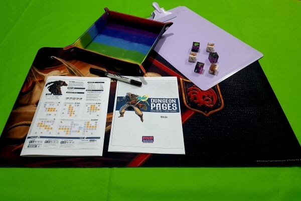 Dungeon Pages é um jogo tático de rolar e escrever onde você joga como um personagem embarcando em uma jornada épica por várias masmorras. Cada folha de missão contém uma seção de personagem e uma seção de masmorra (veja o Exemplo 1).