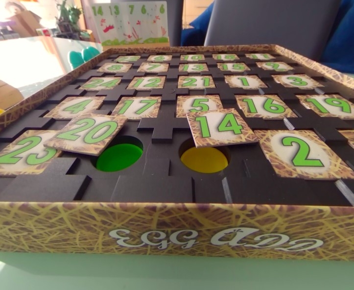 O jogo termina quando todas as peças dos jogadores forem usadas. E ao abrir a tampa, ganha quem tiver mais ovos. Completar 3 e 4 itens em linha reta e na diagonal dá 3 e 4 pontos adicionais cada, e se houver peças do jogo descartadas (ovos), o jogador com mais pontos, calculando -1 por peça, ganha.