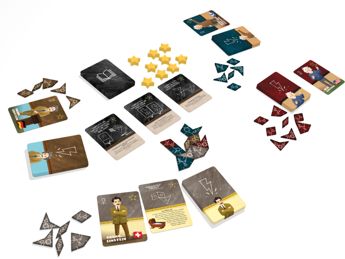 Cada Einstein tem seu próprio baralho de Cartas de Inspiração com base nos acontecimentos reais de sua vida. Essas inspirações oferecem teorias simples para completar. Usando ideias de quatro diferentes ramos da ciência - física, matemática, química e filosofia - representados por quatro formas, cada Einstein coloca peças que representam suas ideias em um tabuleiro comum emergente. Os jogadores conseguem pontos ao completar suas próprias teorias, contribuindo para as teorias de outros jogadores e ajudando a terminar as principais teorias da vida de Einstein.
