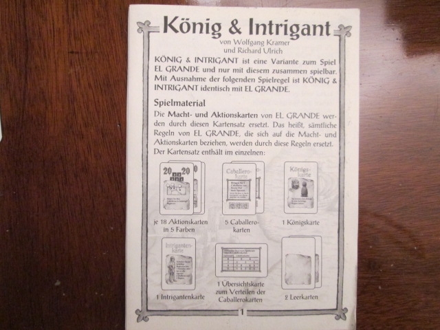Esta expansão para El Grande substitui dois elementos diferentes do jogo original, as cartas de ação e as cartas de ordem do turno, com um único conjunto de cartas. Antes do início do jogo, os jogadores deixam seus baralhos de jogo pessoais com treze cartas. Em seguida, em cada turno, cada um deles seleciona uma de suas cartas, que ditará sua prioridade de ordem de turno, o número de cavaleiros para adicionar ao tribunal, o número de cavaleiros elegíveis para adicionar ao tabuleiro e suas ações.