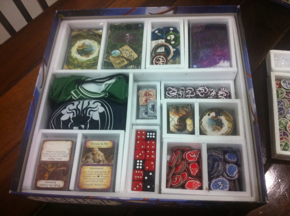 Insert em depron branco. Imagem mostrando a parte de baixo dos organizadores de tokens.