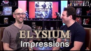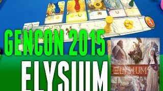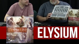 Elysium é um jogo de colecionar componentes e combinações onde os jogadores recrutarão cartas que representam heróis, itens, poderes e os deuses. Estas cartas têm muitos poderes diferentes e você pode criar combinações poderosas para ganhar o ouro (a ajuda dos deuses) e pontos de vitória (o favor dos deuses). Cada carta pertence a um dos oito deuses olímpicos (um domínio), e mostra a potência de acordo com a sua classificação (1 a 3).