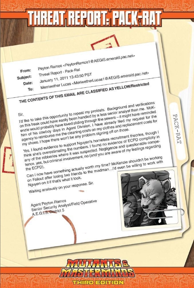 Pack-Rat: O roedor que anda como um homem... um rato astuto que se transformou em forma humanóide, com um talento especial para pegar os resíduos da sociedade moderna, tanto tecnológicos quanto humanos, e transformá-los em seu benefício. Pack-Rat é um ladrão e criador de gadgets, e seus "Rats in the Walls" conhecem cada sombra da cidade.