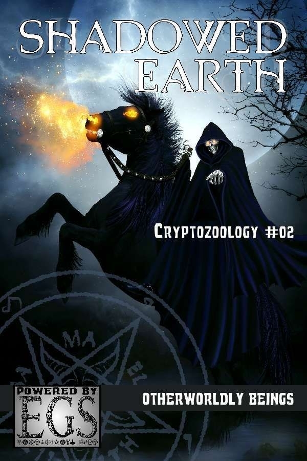 A Criptozoologia é o culminar de fatos, teorias e especulações pesquisadas e documentadas pela Inquisição. Cada publicação contém uma coleção de adversários para uso no Entropic Gaming System em todas as configurações do Shadowed Earth. Cryptozoology #02: Otherworldly Beings apresenta uma coleção de seres bizarros e estranhos de lendas urbanas.