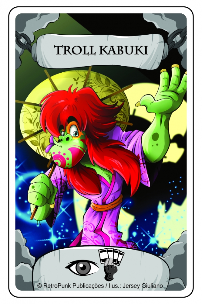 Troll Kabuki - Sim! O terrível Troll também foi para o oriente! E resolveu participar de aulas de teatro! Seu poder é inverter o sentido da mesa. Se o jogo está no sentido horário ele passa a ser anti horário! Ou vice versa.