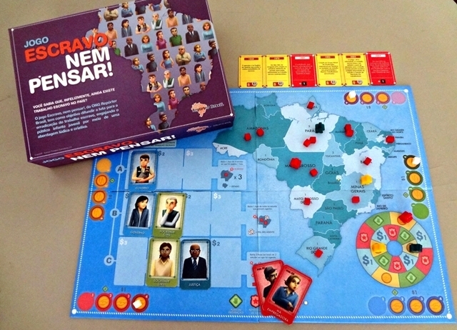 Desde 1995, quando o governo brasileiro admitiu a existência de trabalho escravo no país, mais de 45 mil pessoas foram libertadas dessa condição. Infelizmente, essa prática criminosa ainda persiste em todos os estados do Brasil, em inúmeras atividades econômicas, tanto no meio urbano, como no rural. A organização não governamental Repórter Brasil elaborou o jogo Escravo, nem pensar! com o objetivo de abordar o combate ao trabalho escravo de forma lúdica e didática. A proposta do jogo é erradicar os focos de trabalho escravo no território por meio de ações individuais e coletivas, eliminando os focos de trabalho escravo no mapa do