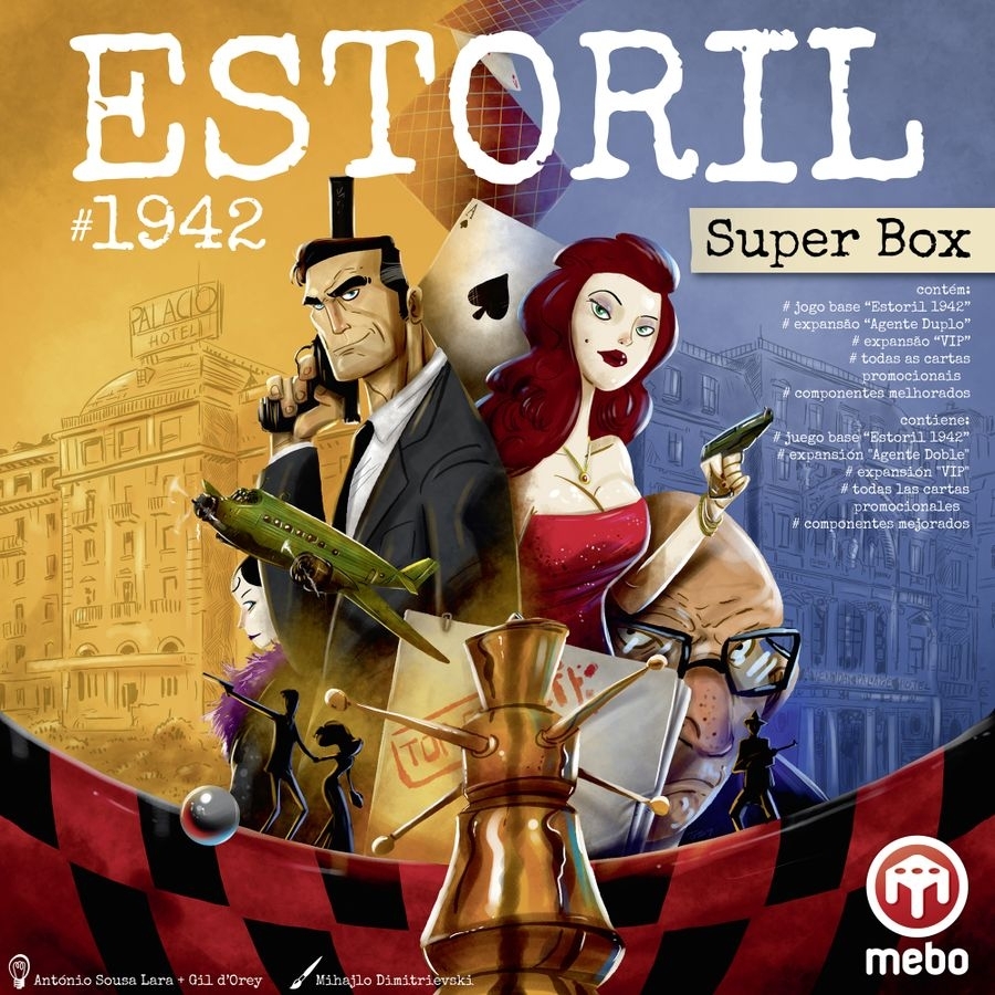Um Super Box contendo o jogo base do Estoril (City of Spies: Estoril 1942) mais todas as Cartas Promocionais (City of Spies: Promo cards), a Expansão “Agente Duplo” (City of Spies: Double Agent) e a NOVA Expansão “VIP” com novos locais e novos espiões e componentes aprimorados.