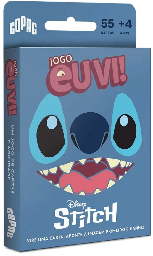 Stitch está entre os 04 novos temas do produto "Eu Vi!", um jogo de cartas acessível, rápido e esperto. Colecionável, ele cabe no bolso e é perfeito para quem adora as personagens Disney.?