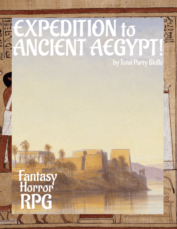 EXPEDITION to ANCIENT AEGYPT! é um RPG de mesa completo com regras para criação de personagens, aventuras e vários NPCs e monstros para seus jogadores enfrentarem. Fácil de jogar, filosofia de design da velha escola, feita com o jogador dos anos 90 em mente. Se você é fã de fantasia pulp, alienígenas antigos e aventuras clássicas, então Expedition to Ancient Aegypt é o jogo para você!
