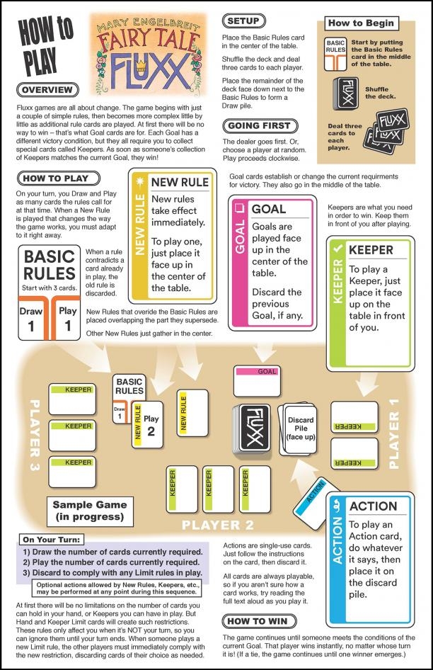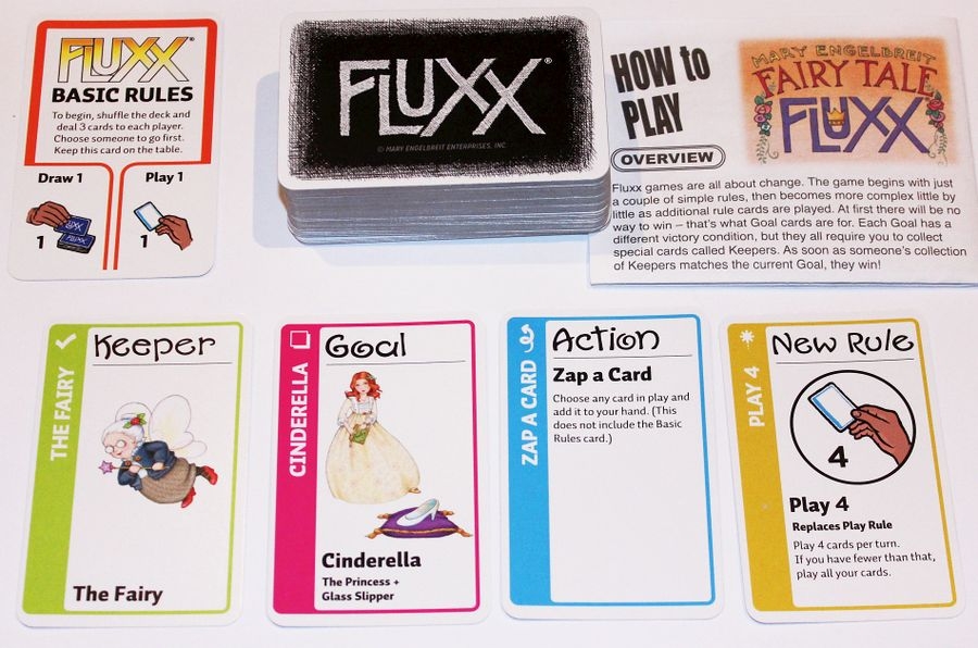 Fairy Tale Fluxx, ilustrado pelo renomado artista folk Mary Engelbreit, traz o zaniness de "o jogo de cartas de regras sempre em mudança" para a terra de "felizes para sempre", e os resultados são dignos de um rei! Reúna os Keepers para se adequarem ao objetivo atual do conto de fadas e você vencerá - mas procure pela Bruxa e pelo Lobo!
