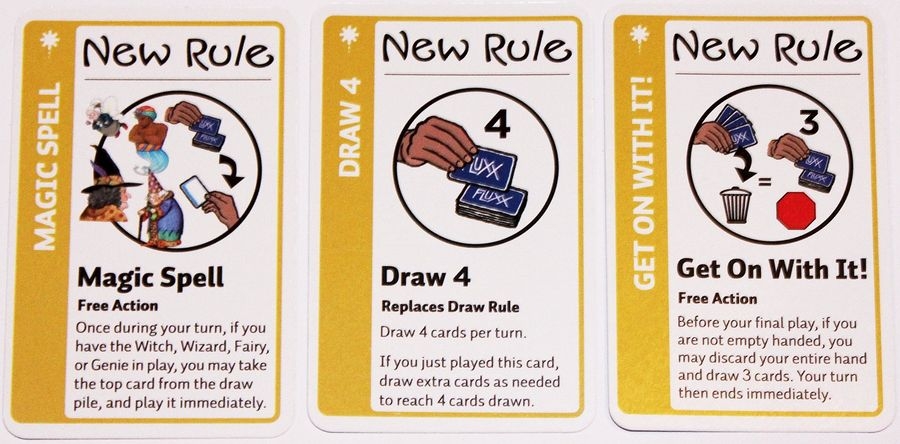 Fluxx é um jogo de cartas no qual as próprias cartas determinam as regras atuais do jogo. Ao jogar cartas, você muda vários aspectos do jogo: como comprar cartas, como jogar cartas e até como ganhar.
