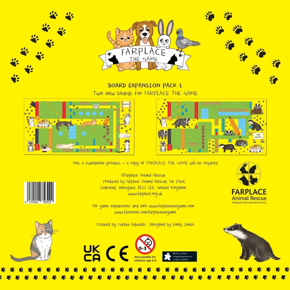 Uma expansão de tabuleiro dupla face para Farplace the Game, apresentando dois novos tabuleiros que alteram as rotas percorridas durante o jogo. Temas MEOW e THE BROCK, com textos ilustrativos de gatos e texugos.